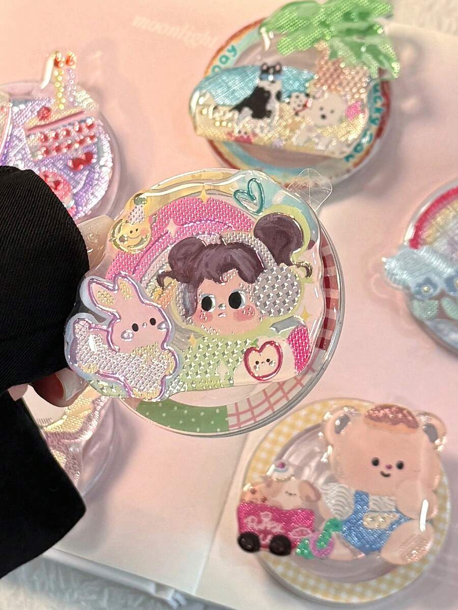 1 Gilded And Colorful Illustration Magnetic Phone Sliding Stand, Suitable For Magsafe Magnetic Stand, Personalized Cartoon Extendable Portable Phone Support Stand