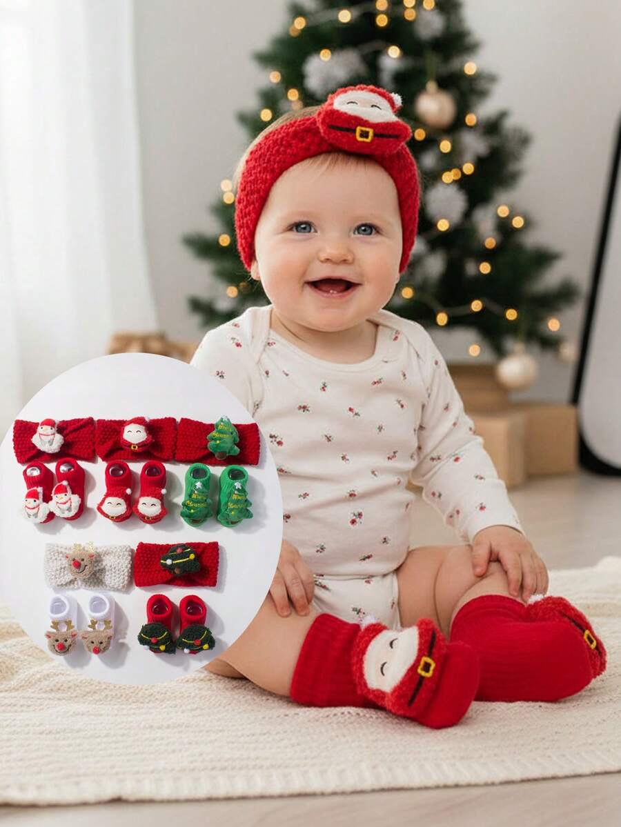 1 PC Baby Headband +1 Pair Baby Socks,For 1-3 Years Old,Toddler Christmas Dress,Christmas Headband And Socks,Fashionable,Suitable For Photo Taking And Daily Life,Baby Christmas Gift