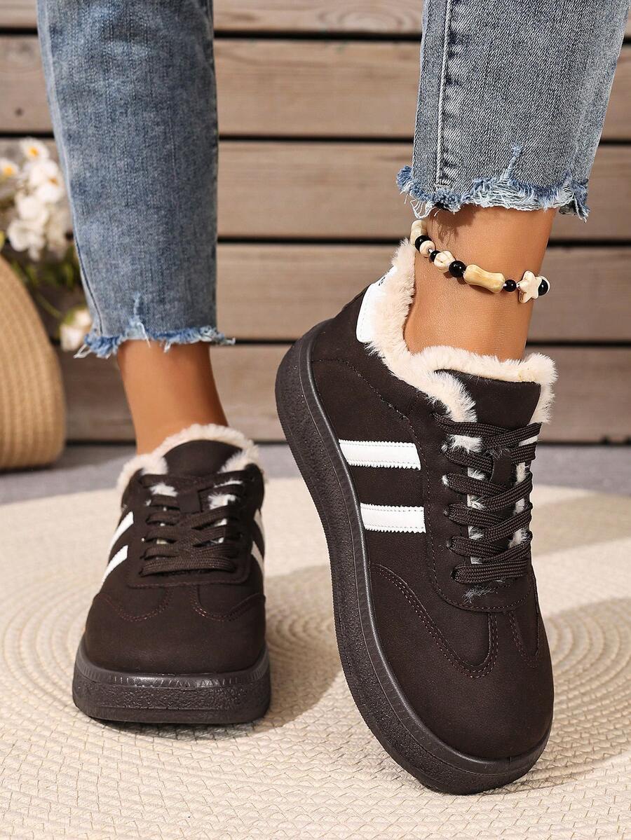 1 Pair Korean Style Fashion Sports Boots, Women's Winter Snow Boots, PU Low-Top Striped Design, Waterproof, Cold-Resistant, Wear-Resistant Outdoor Snow Boots