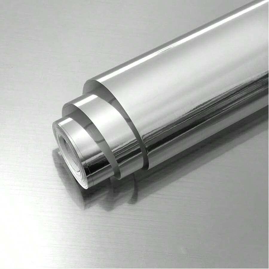 1 Roll Of Silver Stainless Steel Contact Paper/Instant Peeling And Sticking Metal Wallpaper/Self-Adhesive Detachable Wallpaper/Suitable For Kitchen Cabinets/Countertops/Refrigerators/Home Decor/Vinyl Rolls/Waterproof/Oil-Proof