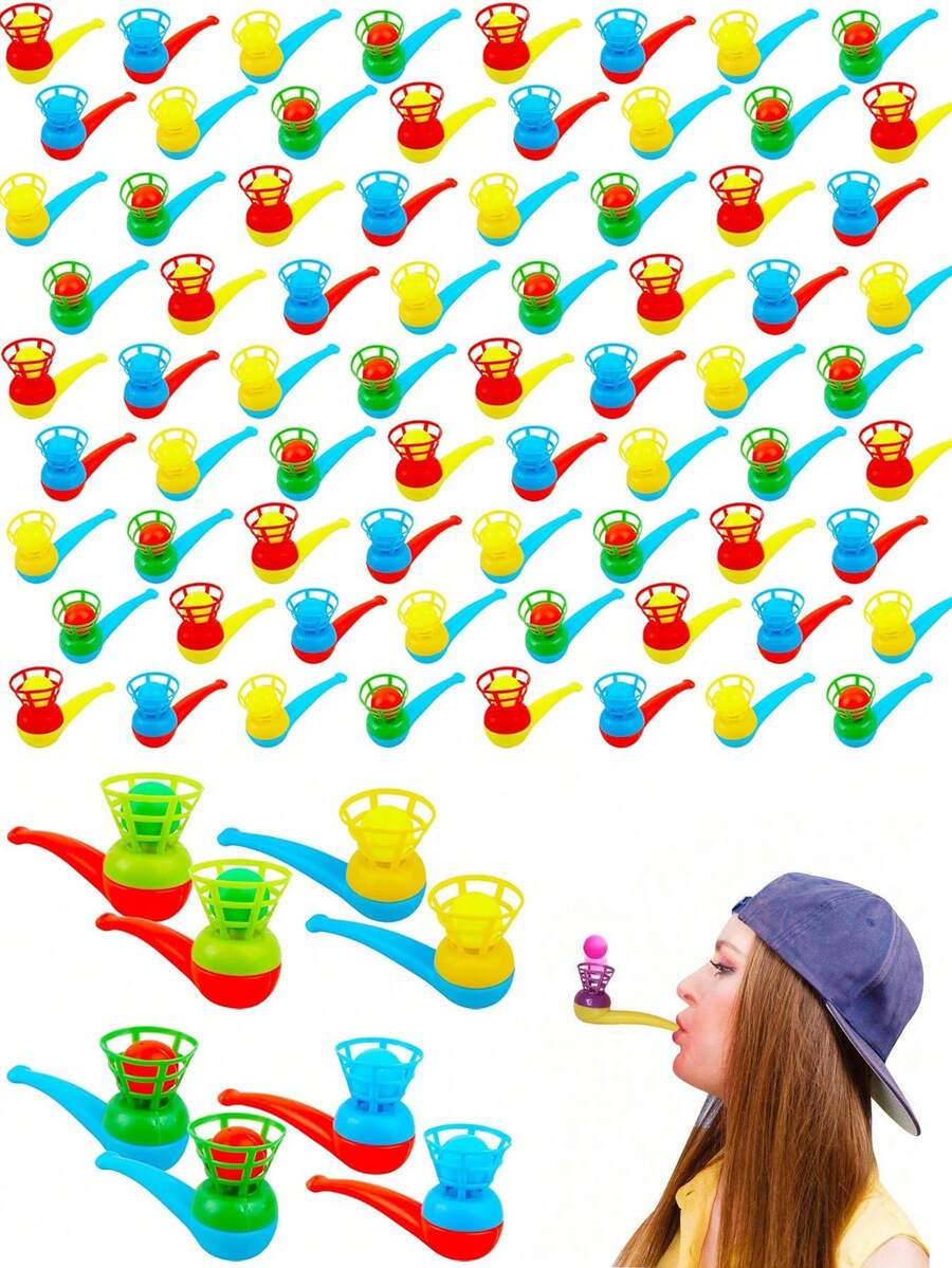 10pcs Random Color Plastic Pipe Shaped Floating Blowing Balls - Suspension Flying Ball Toys - Family Party Favor Interesting Gifts Ideas - Stress Reliever Balance Blowing For Adults Funny Party Supplies