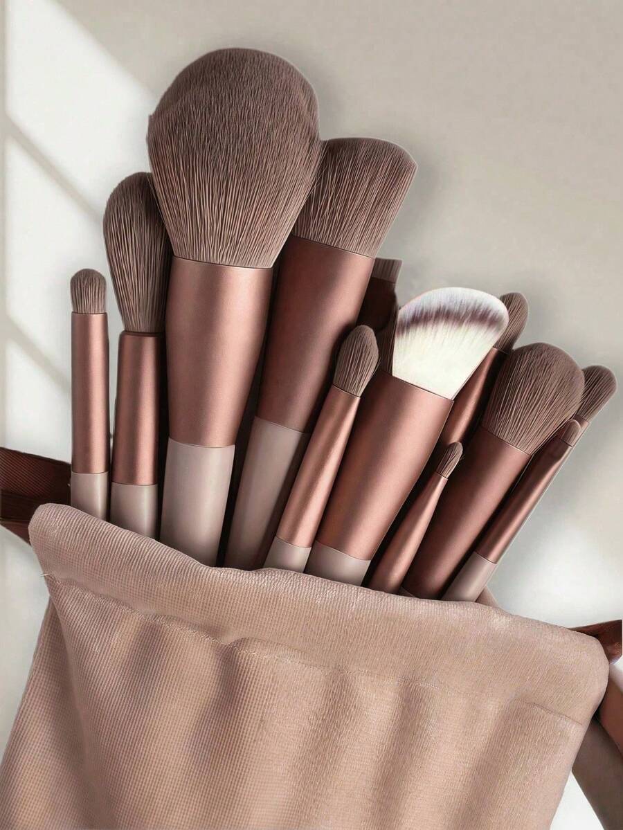 13Pcs Makeup Brush Set Soft Fluffy Professional Cosmetic Foundation Powder Eyeshadow Blending Make Up Brush Beauty Tool With Bag Makeup Sponge Beauty Gift For Makeup Beginner Brown Random Color,Makeup Tools With Soft Fiber For Easy To Carrying