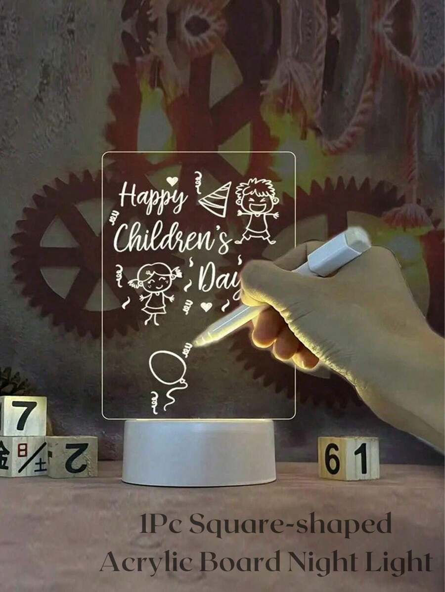 1Pc Square-Shaped Acrylic Board Night Light(Including Base, USB Cable, Stylus, And Acrylic Board), Message Board With Erasable Function And Handwriting Lighting Function