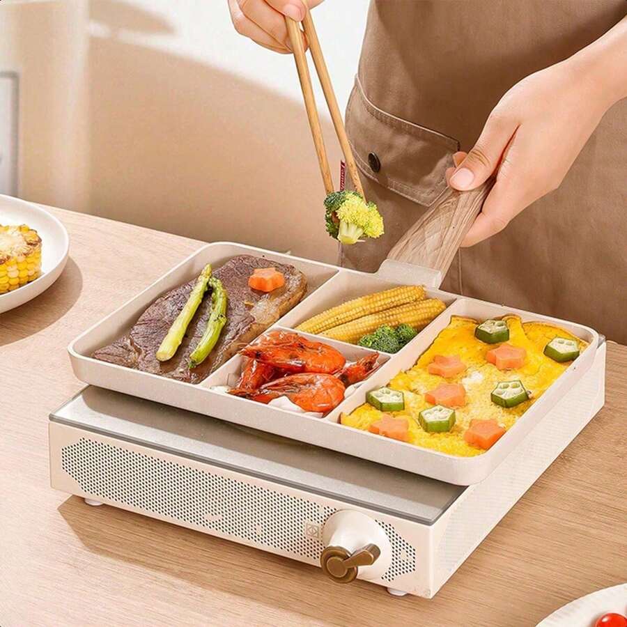 1pc Fluorine-Coated Divided Baking Tray, 10 Inch (Approx. 27 Cm), 4 Compartments, Suitable For Frying Pans, Stoves, Gas, Electric, And Induction Cookers, PFOA-Free, Aluminum Seafood Boiler