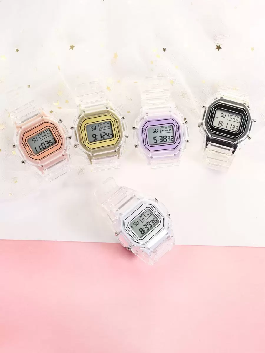 1pc Kids Clear Silicone Strap Sporty Luminous Square Dial Electronic Watch, For Daily Life