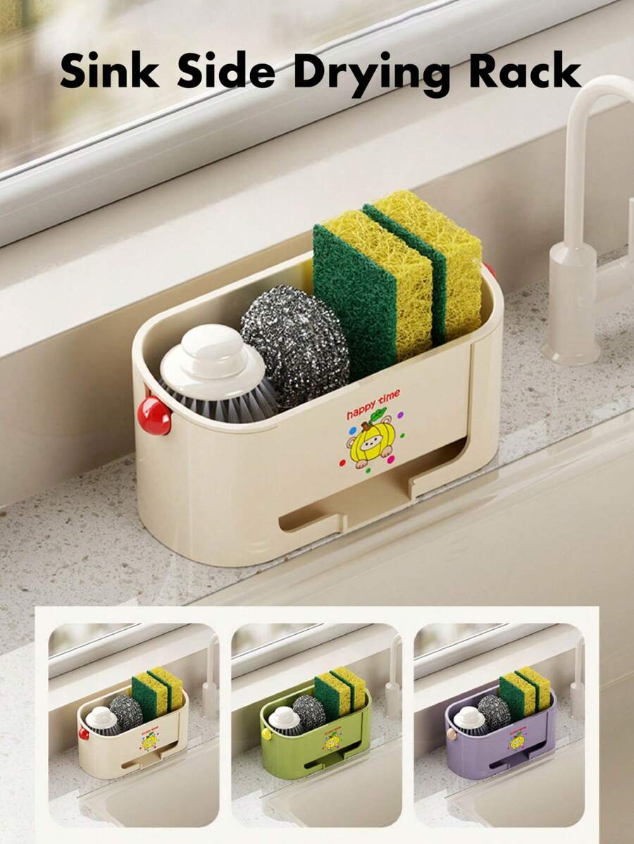 1pc Kitchen Sink Side Drying Rack – Angled Drainage Design Directs Water Into Sink, Large Capacity Storage For Sponges, Brushes & Soap Bottles. 1pc Kitchen Sink Side Drying Rack – Angled Drainage Design Directs Water Into Sink, Large Capacity Storage For Sponges, Brushes & Soap Bottles. Kitchen Organiser