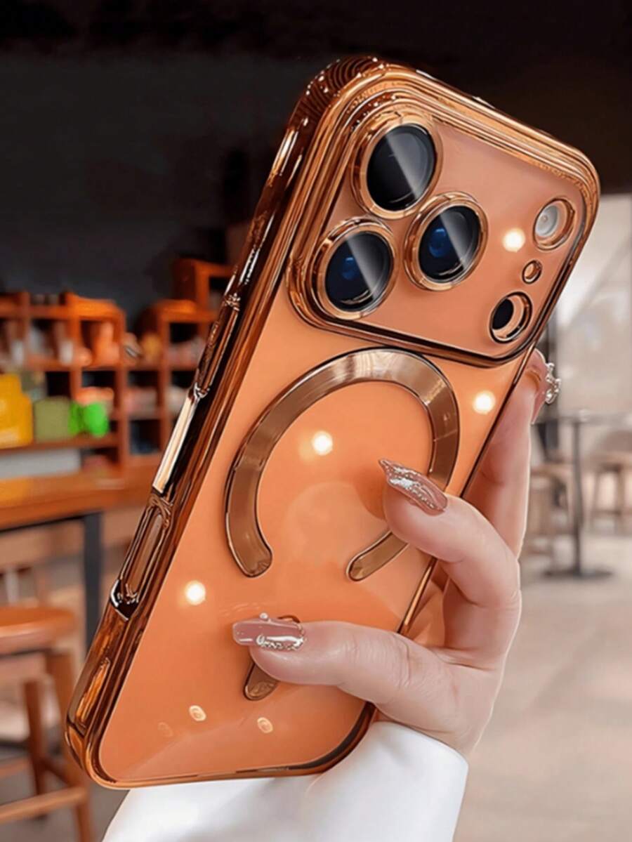 1pc Star Universe Orange Magnetic Adsorption Electroplated Edge Silicone Soft Transparent Full Coverage Glass Lens Film Strong Magnet Compatible Magnetic Wireless Charging Anti-Dust Anti-Drop Non-Yellowing Phone Case Compatible With Apple 17Pro/17ProMax/Air/17/16Pro/16ProMax/16Plus/16/16E/SE4/15Pro/15ProMax/15Plus/15/14Pro/14ProMax/14Plus/14/13Pro/13ProMax/13/12Pro/12ProMax/12/11ProMax/11/11Pro/XSMax/XR/XS/X