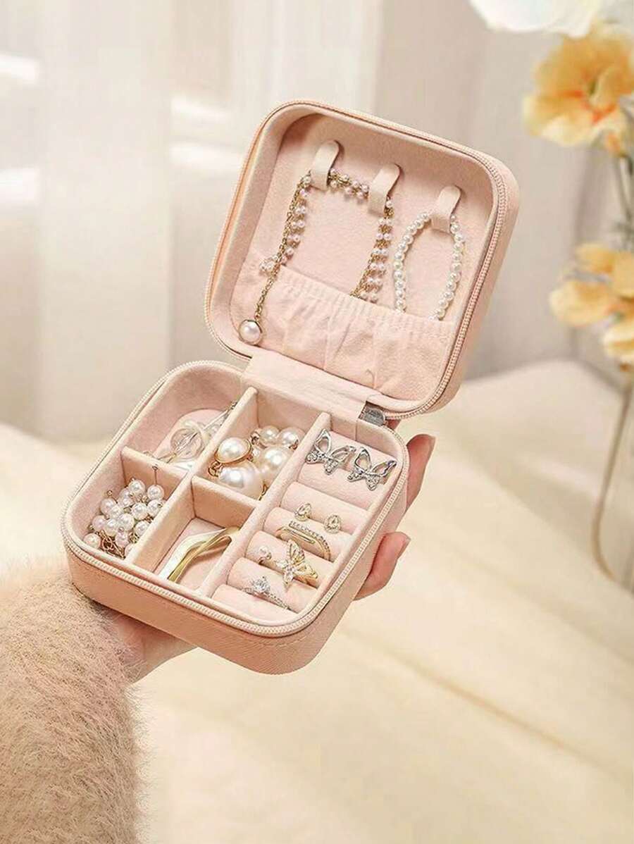 1pc Travel Jewelry Storage Box, Simple Travel And Home Jewelry Storage Box, Portable Earrings, Rings, Bracelets, Jewelry Storage Box, Fashionable Personalized Leather Jewelry Storage Container, Used For Ring, Necklace, Earnail Storage, Perfect Gift For Women, Exquisite And Unforgettable Holiday Gifts For Women's Day And Valentine's Day, Christmas Gifts,For Holiday Beach, Bathroom Collection, Bedroom Collection, Large Capacity