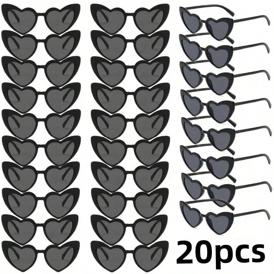 20pcs Retro Heart Shaped Sunglasses, Women's Single Sunglasses, Perfect For Singles Party, Wedding Party, Mother's Day Gift, Halloween Party Supplies