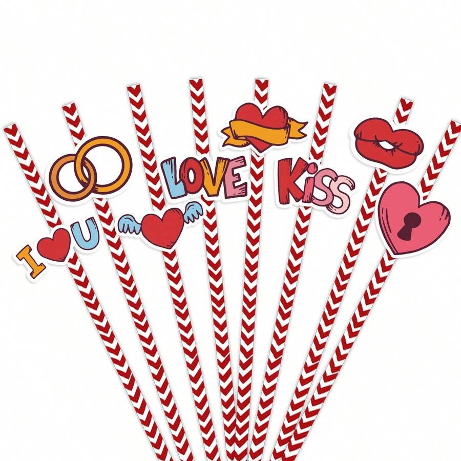 24pcs Valentine'S Day Themed Red Heart Paper Straws, Wedding Party Supplies, Disposable Straws For Beverages, Cocktails, Engagement, Birthday, Mother'S Day, Home Party