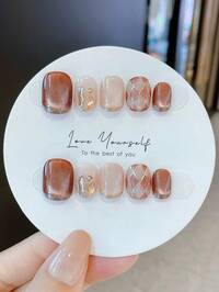 qihangxin 10pcs Handmade Press-On Nail Stickers, Y2K Style, Hand-Painted Gold Flowers, 3D Lavender Cat Eye, Purple Nails, Short Nails, Short Square Nails, Fake Nails, Suitable For Girls' Daily Wear, Also Can Be Used As Holiday Gifts Like Christmas, Valentine's Day, New Year #1 Bestseller