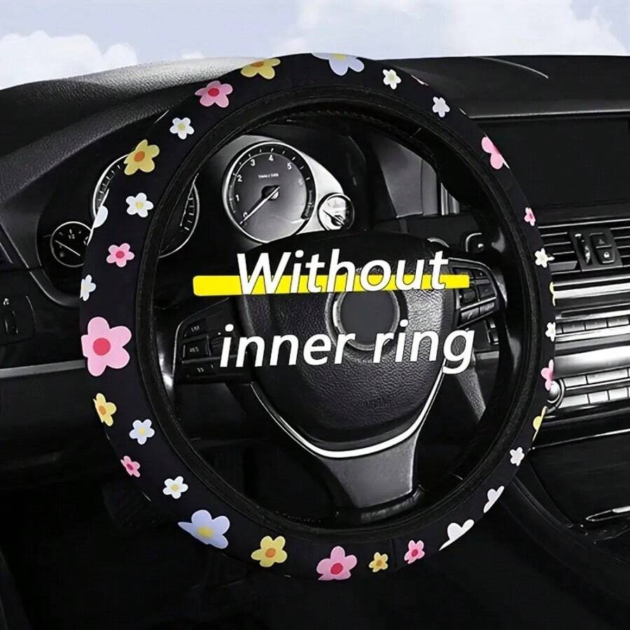38cm/15inch Universal Cute Floral Steering Wheel Cover, Non-Slip Car Interior Accessory, Fits Most Vehicles,Car Accessories