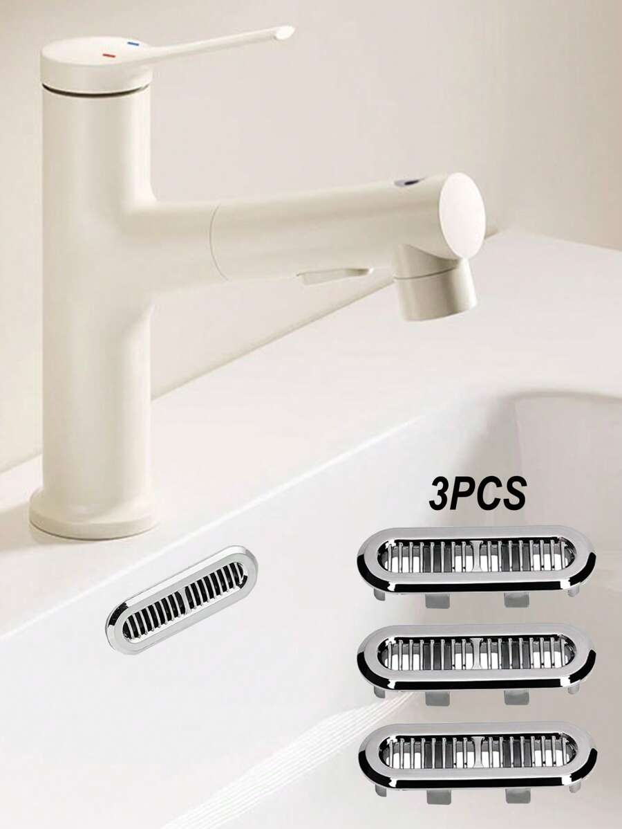 3pcs Basin Hole Covers,Overflow Long Hole Cover,Wash Basin Plug Filter,Decorative Cover,Rectangular Round Ring Plug For Bathroom Kitchen Wash Basin/Bathtub/Pedestal Basin/Mop Sink Overflow Hole,Bathroom Kitchen Accessory