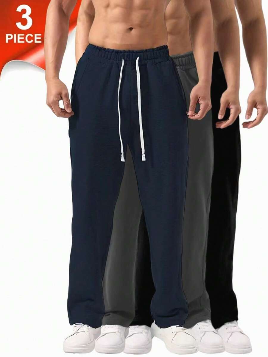 3pcs Black + Dark Grey + Light Grey Fashion Casual Sports Drawstring Waist Straight Leg Pants, Men's Regular Fit Sweatpants, Joggers, Gift For Men