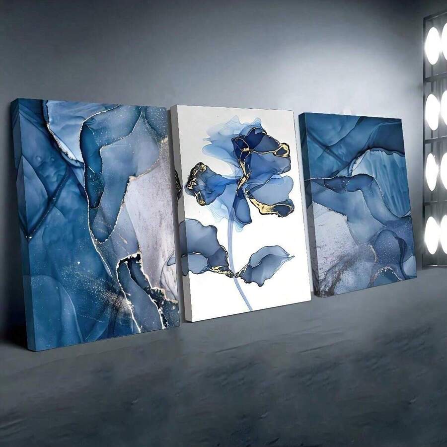 3pcs/Set Canvas Paintings And Posters,Modern Blue Floral Abstract Art Decor,Home Decor,Wall Art,Room Decor,HD Prints,Ideal Gifts,Living Room,Bedroom,Dining Room,Office Decorative Art,Posters,Wall Art,Room Decoration Stuff,Modern,Botanical(Optional) Frame)