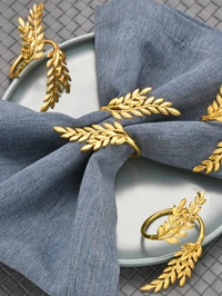 4pcs/6pcs Gold Wheat Ear Pattern Napkin Rings, Gold Harvest Wheat Napkin Rings, Gold Harvest Wheat Napkin Rings, Harvest Wheat Napkin Rings, Metal Leaf Napkin Holders, Autumn Napkin Ring Holders, Wedding Birthday Party Table Decor, Thickened Iron Wheat Napkin Rings, Suitable For Birthday, Farm, Wedding, Party And Other Occasions #6 Bestseller