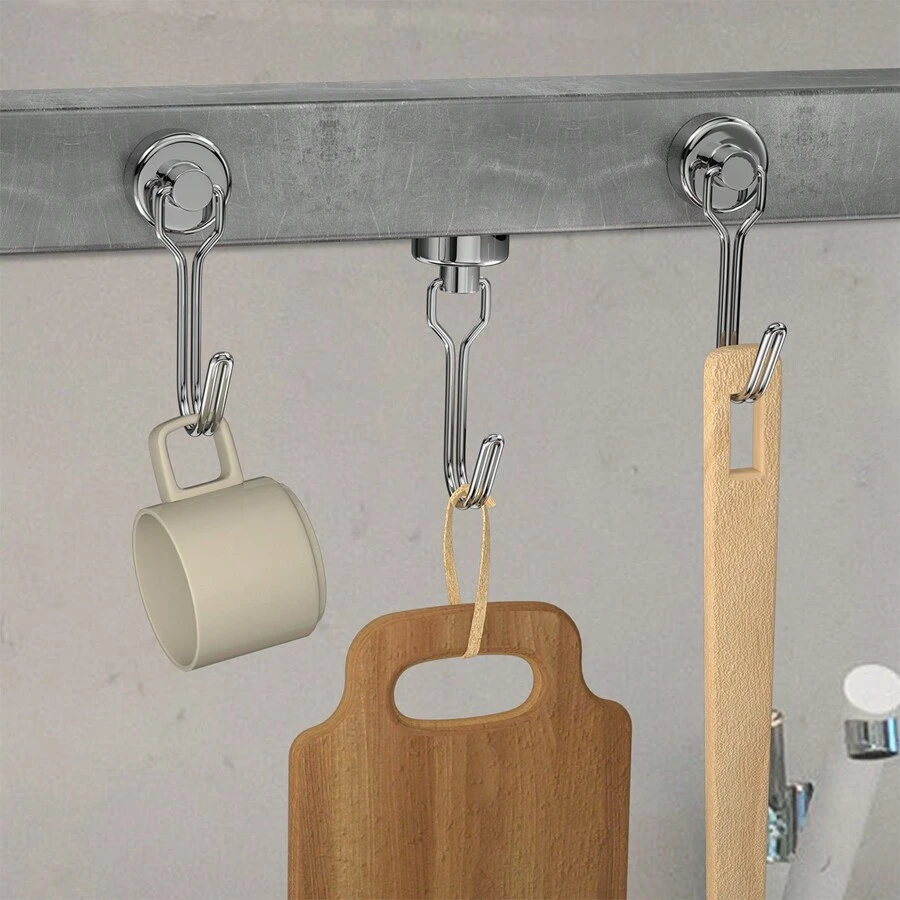 6 Pcs Swivel Swing Magnetic Hooks, 25LBS Strong Neodymium Rare Earth Heavy Duty Magnet Hook Perfect For Indoor Outdoor Hanging,Refrigerator,Grill,Kitchen,Key Holder,Silver/Black