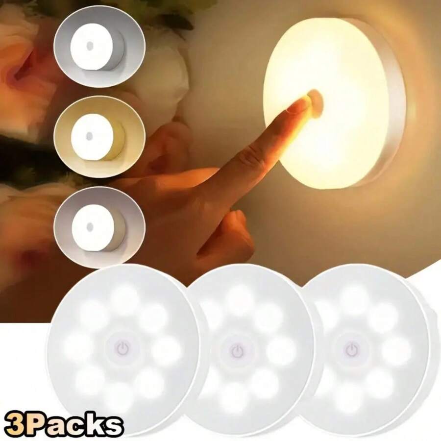 6pcs/3pcs/1pc LED Rechargeable Mini Night Light, 3 Light Colours, Adjustable Brightness, 2 Mounting Options, Perfect For Bedroom, Bathroom, Wardrobe, Kitchen Cabinet Lighting (With Data Cable And Magnetic Tabs)(250mAh)