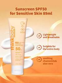 1pc Thinkbaby Sensitive Skin Sunscreen, 89ml SPF50, Gentle, Hypoallergenic, Fragrance-Free Physical Formula With Soothing Chamomile & Aloe, Suitable For Sensitive Skin, Outdoor & Daily Use For Children