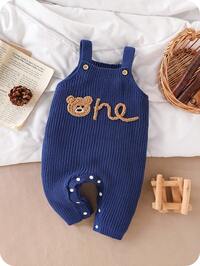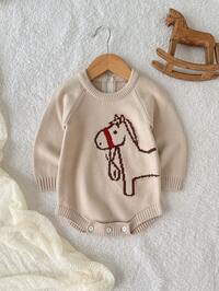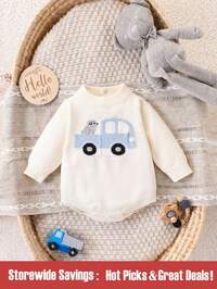 LullasweetSHEIN Baby Boys Casual Stylish Cute Beige With Twist Rope Floral Knit Jumpsuit, Soft & Comfortable, Suitable For Daily, Outings, Travel, Vacation, Home, Daycare, Autumn/Winter, Christmas, Back To School, Party, All-Match Baby Knit Outfit Baby Knit Jumpsuit