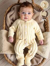 BebeiluSHEIN Newborn Baby Boy/Girl Toddler Fall/Winter Clothes Outfits: Green Knitted Rompers, Overalls, Sweaters, Comfortable, Versatile, Fashionable, Cute, Retro, Classic, Simple Design Basics, Suitable For Indoor, Outdoor, Skiing, Daily Wear, Sports, Play, Party, Photo Shoots, Holidays Baby Boy Knit Romper Knitted Baby Boy Outfit Newborn Baby Layette Set #4 Bestseller