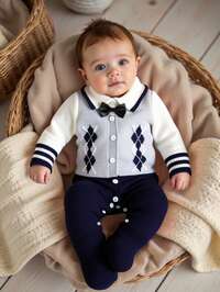 LullasweetSHEIN Baby Boy Clothing Is Casual, Fashionable And Cute. It Features Diamond Patterns, White, Gray, Royal Blue Knitted Stripes, A Long-Sleeved Middle Eastern Sweater, And A One-Piece Crawling Suit. It Is Soft And Comfortable, Suitable For Daily Occasions, Outdoor Scenarios, Travel Scenarios, Vacation Scenarios, Home Scenarios, Nursery Scenarios, And Children Playing. It Is Suitable For Christmas, School Opening, Parties, And Festivals