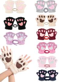 1pair Winter Thickened Kids Warm Ski Gloves