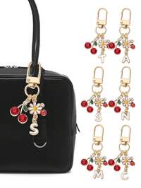 Fashion High Quality Cute Cherry Golden Bag Charm, Flowers, Ladybugs, Initials A-Z- Cherry Key Fashion Backpack Pendant Decoration, Keychain, Bag Charm Alloy Pendant, Headphone Pendant, Car Charm, Decorative Charm, Cherry Keychain, Bag Accessiores, With Clip For Bag, Sparkling Resin & Metal Accessory For Purses And Bags For Wome, Backpack #4 Bestseller