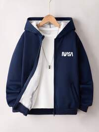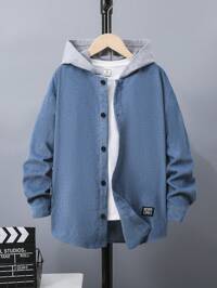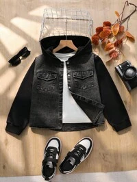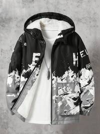 VacauraTween Boy Casual Sports Fashionable Hooded Jacket, Woven Fabric, Elastic Cuffs, Front Panel Patchwork, Loose Fit, Comfortable, Suitable For Spring, Autumn, Daily Wear, Outdoor, Gathering, Photo Shoot Chic Outfits For Autumn/Winter Fall