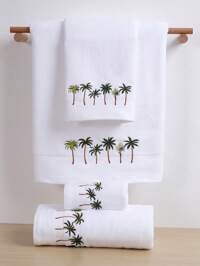 QIBHI 3/1pc(S) Premium Cotton Terry Embroidered Bath Towel Or Hand Towel, Absorbent For Home, Bathroom, Hotel, Gym, Travel, Gift, Salon, Sports, Outdoor, Beach, School, Back To School, Travel Accessories, Home Essentials, Towel, Skincare - Coconut Tree, Sunflower Field Rustic Style #2 Bestseller