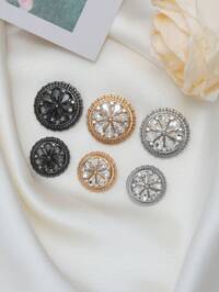 5 Pcs/Pack High-End Double-Layer Retro Floral Glass Crystal Round Metal Buttons, For Fur Coats, Cashmere, Shirts, Sweaters, Suits, Coats, Autumn/Winter Jackets, Decorative Buttons For Clothing, Shoes, Bags, Jewelry DIY Accessories #8 Bestseller