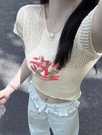Light Blue Round Neck Short Sleeve Knit Top, 2026 Spring/Summer Bestseller, Korean Gentle Style Minimalist Elegant Slimming Blouse. High Elasticity Icy Silk Knit Fabric, Soft And Breathable, Non-Sweating. Classic Round Neck Design Flatters Neckline And Slims Face. Short Sleeve Style Suitable For Spring/Summer, Versatile And Easy To Match. Loose Fit Slimming Silhouette Hides Flaws, Fits All Body Types. Suitable For Commuting, Casual Outings, Dates And Gatherings. Pair With Jeans, Skirts, Wide-Leg Pants To Achieve Gentle Goddess Vibe. Spring/Summer Must-Have Slimming Wardrobe Staple, Seamless Fusion Of Minimalist Sophistication And Korean Softness. Top Choice For Fashion Bloggers. #7 Bestseller