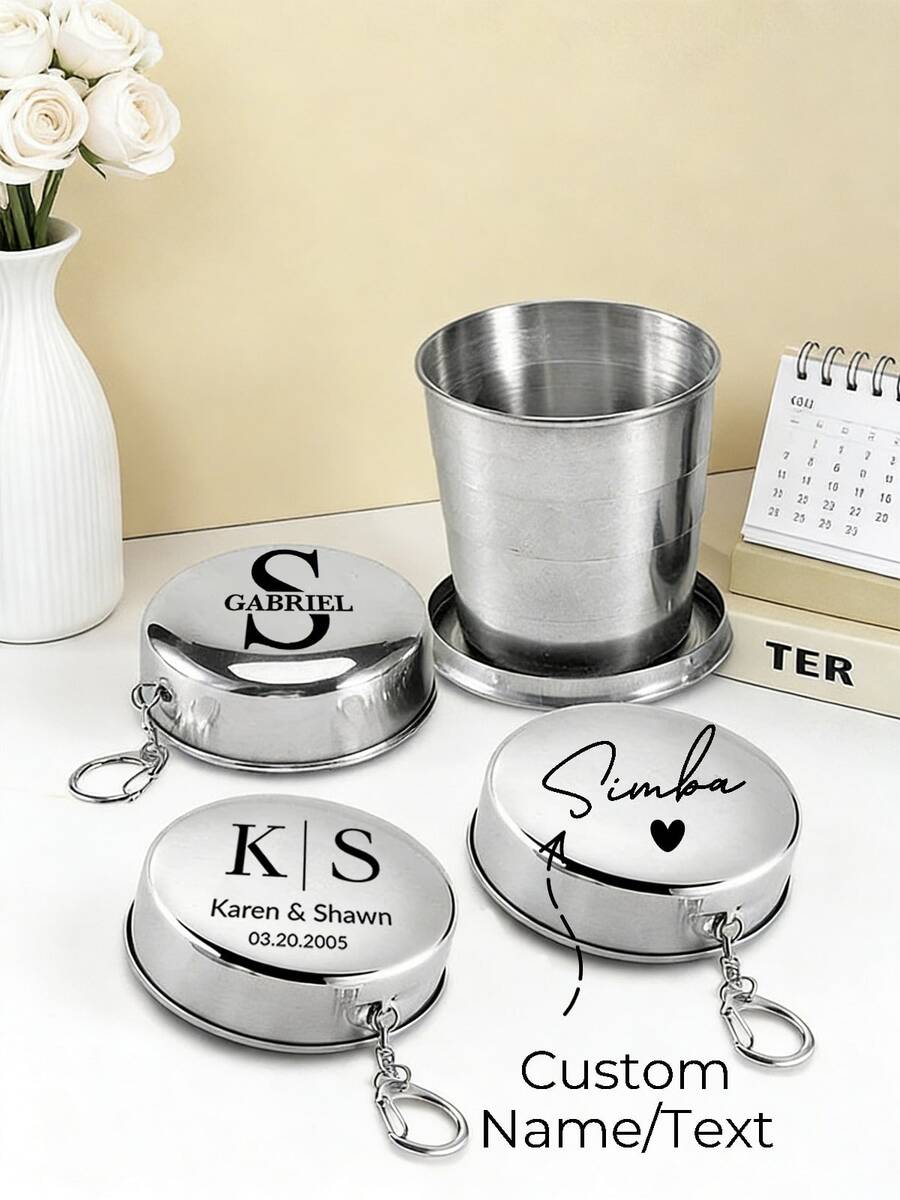 Customized Stainless Steel Collapsible Travel Cup, Personalized Minimalist Camping Folding Cup, Customized 304 Stainless Steel Folding Cup, Personalized Travel Cup, Foldable Metal Travel Collapsible Cup, Engraved Outdoor Folding Cup Travel Folding Cup Keychain, Suitable For Outdoor Camping, Hiking, Driving