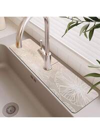 Faucet Mat, Minimalist Style Water Tap Pad, Enhancing The Sense Of Space Quality, Anti-Splash Faucet Mat, Anti-Moisture Anti-Slip Faucet Mat, Kitchen Countertop Accessory, Kitchen And Dining Table Accessory, Sink, Anti-Moisture Absorbent Mat, Absorbent Dish Rack Drain Mat, Multi-Functional Absorbent Oil-Resistant Non-Slip Mat #7 Bestseller