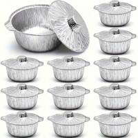 4pcs/Set Disposable Aluminum Foil Pots With Lids, Round Aluminum Foil Pots, Disposable Cooking Utensils, Food Containers, Suitable For Vacation, Travel, Camping, Baking, Heating, Cooking, Hiking, Home Kitchen, Restaurant Kitchen (33.8oz), Barbecue Accessories, Camping Accessories, Kitchen Accessories, Kitchen Tools, Slouchy Cooking Utensils, No Need To Wash
