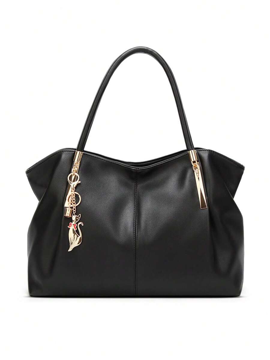 Elegant Shoulder Handbag, Women's New Fashion Versatile Sophisticated Tote Bag, Large Capacity With Metal Decor PU Leather, Suitable For Outing, Commuting, Work, Office, Holiday