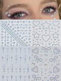 Heart-Shaped Five-Pointed Star Bow Acrylic Hollowed-Out Diamond, Shiny Facial Diamond Stickers, Diamond Patches In Various Shapes Such As Five-Pointed Stars, Hearts, And Bows, Circular Sticky Facial Patches In Multiple Colors Including Pink, Blue, Purple, And Red, Facial Patches, DIY Facial Patches, Lower Eye Makeup Patches, Faux Pearl Crystal Diamond Patches, Makeup Patches #5 Bestseller