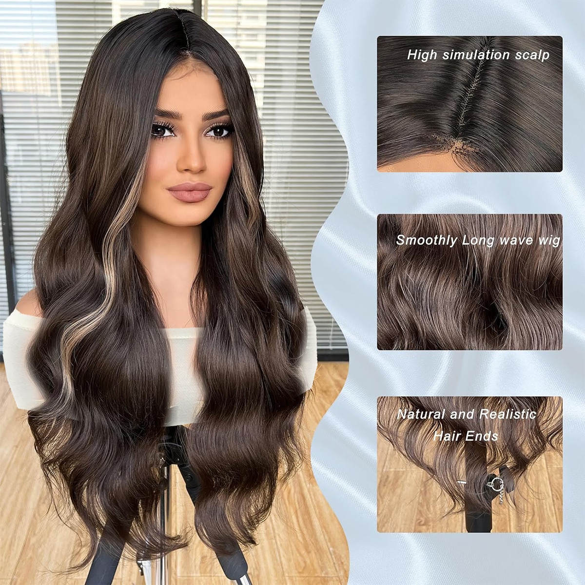 Glueless Lace Wigs Long Natural Wave Middle Part Curly Wig 4*2 Lace Area Brown Mixed Blonde 26 Inch Synthetic Heat Resistant Wigs Braiding Lace Wigs Swiss Lace Daily UsedStylish Wigs