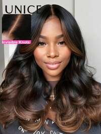 UNICE HAIR 7"X5" Lace Front Wig, Purple/Black/Cherry Blossoms, Fluffy Wavy Wig With Face-Framing Layers, Pre-Cut, Pre-Bleached, Pre-Plucked, Glueless, 100% Human Hair, Tangle-Free, Invisible Drawstring Design, By Unice Wigs