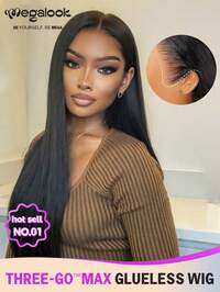 MEGALOOK HAIRMEGALOOK Upgraded 13x6 3-In-1™ Lace Front Wig, Silky Straight Hair, Pre-Cut Lace Hairline, Bleached Knots, Glueless Real Human Hair, With Drawstring, 150%/200% Density, Pre-Plucked, Transparent Lace, Natural Color Human Hair Wig, Suitable For Women's Daily Wear, Office, Party Styling, Y2K Cool, Vacation, Outdoor Role-Playing, School, Holiday, Halloween, Festival