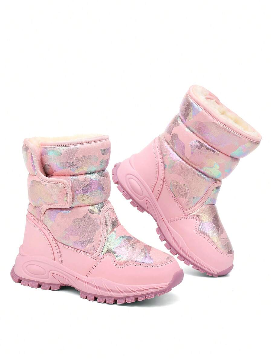 Kids Snow Boots, Winter Warm Non-Slip Outdoor Plush Shoes For Boys And Girls, Thick Thermal Lining, Camouflage, Hook And Loop, Pull-On Long Shaft Children Snow Boots