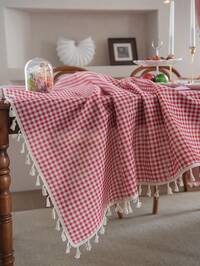 1pc Red Plaid & Green Tablecloth, Bohemian Casual Fresh Style Dining Table Cover, Suitable For Hotel, Restaurant, Bedroom, Living Room, Party, Outdoor Gathering, Holiday Decor,Fall Decor,Autumn Decor,Room Decor #2 Bestseller