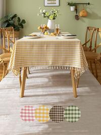 1pc Solid Color Linen Tablecloth, Black Tassel Decor, Vintage Rectangular Dining Table Cover, Suitable For Farmhouse Kitchen, Dining Table, Dinner, Family Gathering, Buffet, Wedding, Hotel Decor, Daily Home Decor, Thanksgiving Decor, Holiday Party Decor, Autumn Decor #6 Bestseller