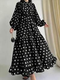 ApreryElegant Off-Shoulder A-Line Dress - Ruffle Design, Novel Chinese Style Floral Print, Suitable For Summer, Weddings, Romantic Occasions, Parties And Festivals. Summer Dress, Elegant Party Dress, Valentine's Day Dress, Beach Dress, Elegant Party Dress, Wedding Guest Dress, Women's Wedding Party Dress, Romantic Dress