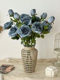 1 Bouquet Artificial Rose Flowers, Includes Silk Embroidered Balls, Suitable For Weddings, Home, Restaurant, Bedroom, Vase Decor, Holiday Birthday Parties, Wedding Decor, Flowers, Valentine's Day Gifts, New Year DIY Materials, Artificial Plants, Autumn Decor, Room, Desk, Garden Decor, Room Decor Items, Valentine's Day Gifts, Graduation Gifts #1 Bestseller