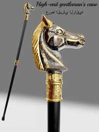 1pc Dual-Tone High-End Gentleman's Cane, Horse Head Shaped Creative Metal Material Walking Stick, Animal Style Fashion Civilized Cane, Detachable Mediterranean Ramadan Ramadan Arabic Festival Cane, Casual Retro Cane, Cosplay Game Prop Magician Performance Scepter, Elegant High-End British Style Men's Cane, Specially Suitable For Daily Use, Creative Men's Gift