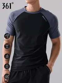 361361degree Summer Workout Men's 2025 Printed Short Sleeve Swimsuit, Contrast Color Patchwork, High Quality Screen Printing Won't Peel Off, Microporous Breathable, Quick Dry Elastic Fabric, Suitable For Swimming, Hot Spring, Surfing, Snorkeling, Water Polo, Kayaking, Sailing, Casual Wear Black #10 Bestseller