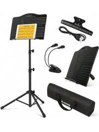 New Desktop Version: Folding Music Stand With Music Clip, Dual Functions: Reading Stand, Writing Stand, Music Stand, Book Stand, Desktop Stand, Menu Stand, Projector Stand, Laptop Stand, Cooling, Heat Dissipation, Vertical Stand, Lightweight Steel, Adjustable Height From 70-138cm, Includes Soft Storage Bag, Black