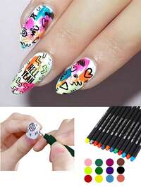 FLYSEA Nail Art Markers, 12/24 Colors Classic Nail Art Pens, Nail Art Painting Pens, DIY Nail Highlighter Outliner Pens, Nail Art Markers, ABS Nail Art Marker Set, 12/24pcs/Set Nail Art Graffiti Pens, 0.5mm Acrylic Paint Pens, Nail Art Graffiti Pens, Waterproof Nail Polish, DIY Quick-Dry Dotting & Lining Pens, Precise 3D Nail Art Markers, Quick-Drying, Suitable For Home And Nail Salon DIY, Detailed