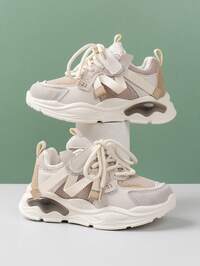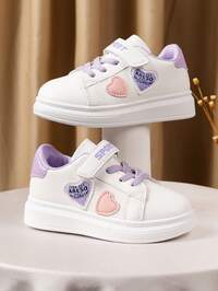 1 Pair Back To School Casual & Fashionable Children's Skate Shoes, Made Of PU Leather With Multi-Color Patchwork Upper, Mainly White With Purple & Light Green Accents, Simple & Fresh Design, Soft, Lightweight, Comfortable, Convenient Hook And Loop Closure, Suitable For Children's Daily Sports, Leisure, Play, And Holiday Occasions, Combining Aesthetics And Practicality. #5 Bestseller